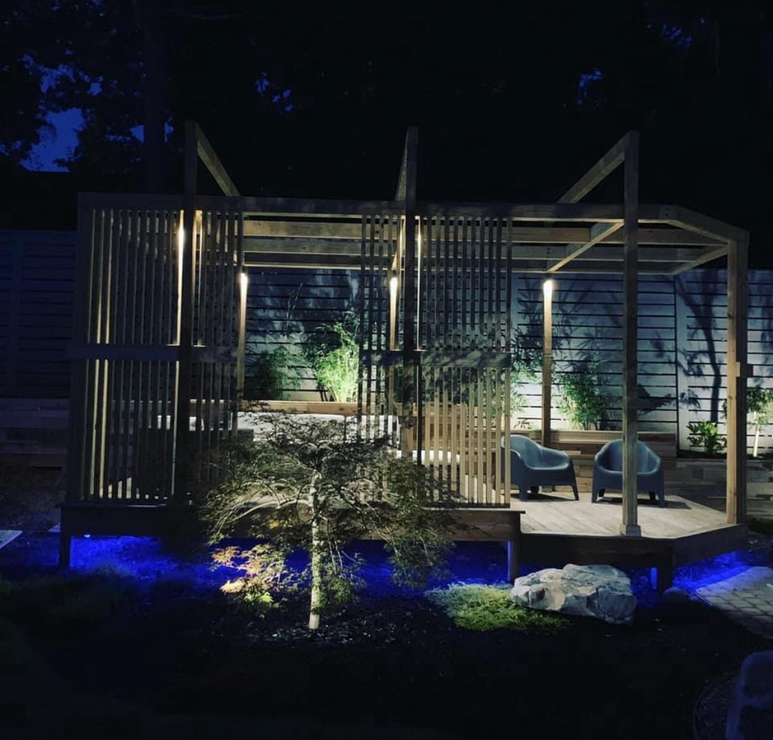 An elegant outdoor living space extension with a custom-built pergola and multi-level deck, ideal for relaxation and entertainment. Atlanta outdoor spaces.